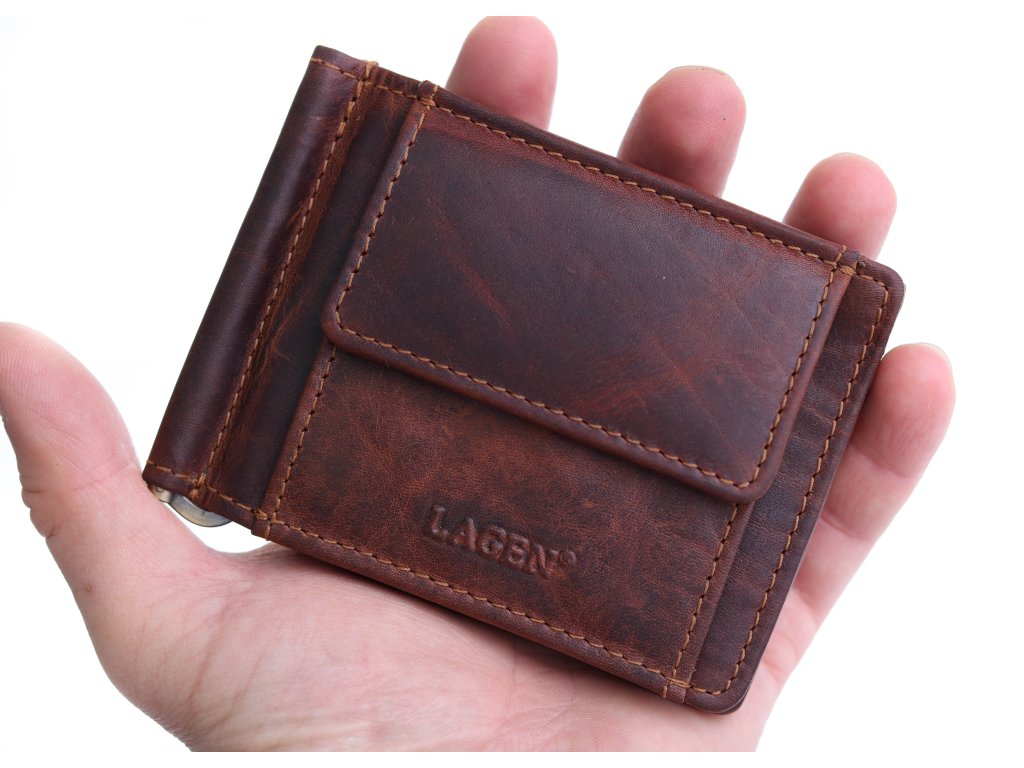 Pánska kožená dolárka Lagen 6596 tmavo hnedá