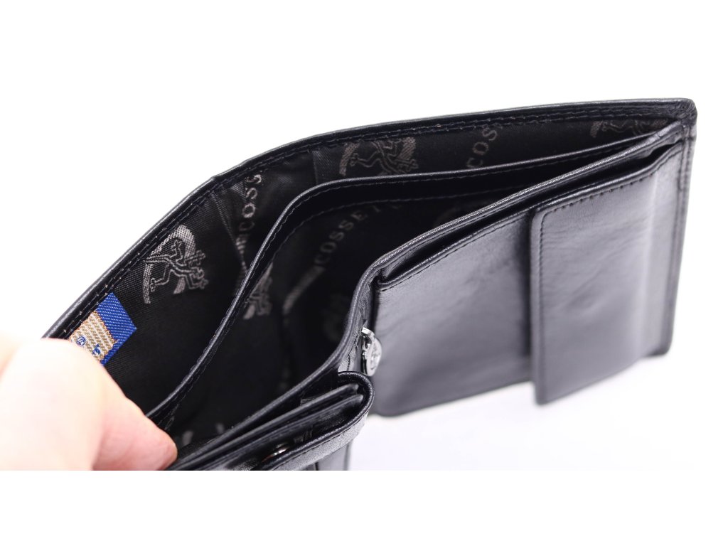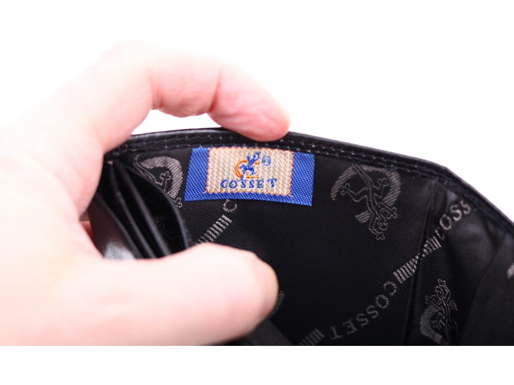 Perfektne vybavená pánska kožená peňaženka na výšku z kvalitnej hovädziny od tradičnej značky Cosset obsahuje veľké množstvo priehradok na doklady a kartičky.