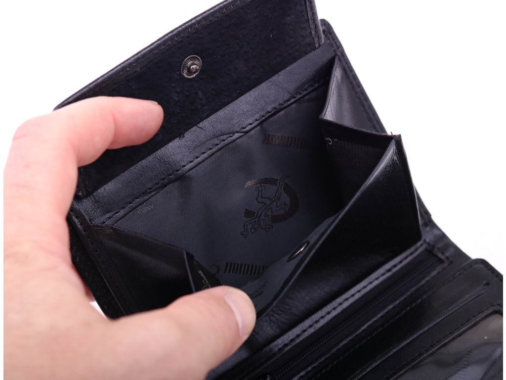 - 7x priehradka na väčšie doklady rozmeru 10,5 x 7,5 cm (technický preukaz, väčší občiansky preukaz,...) - tri priehradky sú vybavené pevnou priehľadnou fóliou