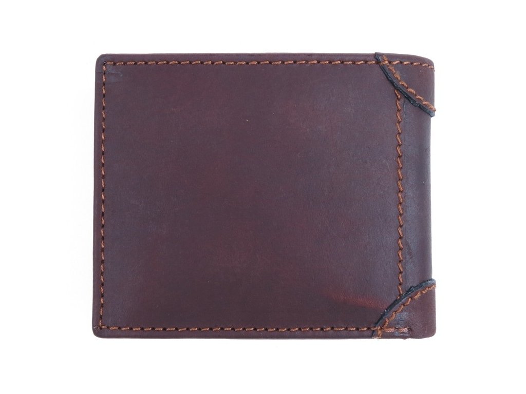 Moderná pánska kožená peňaženka v hnedej farbe so svetlým prešívaním a s oranžovým logom výrobcu Lagen. Jednoduchá a praktická – to charakterizuje túto koženú peňaženku otvárajúcu sa na šírku a s najnutnejším počtom priehradiek.