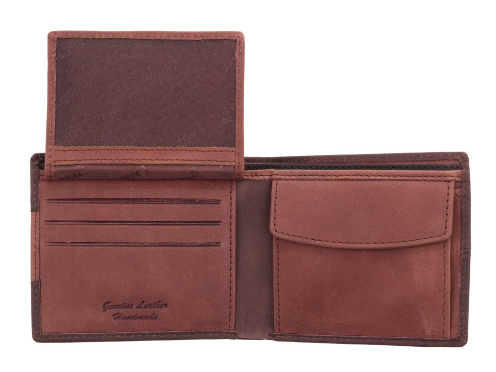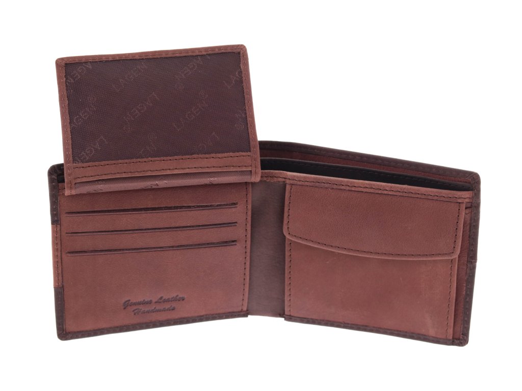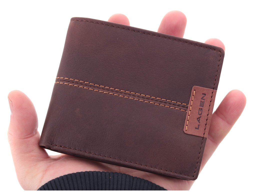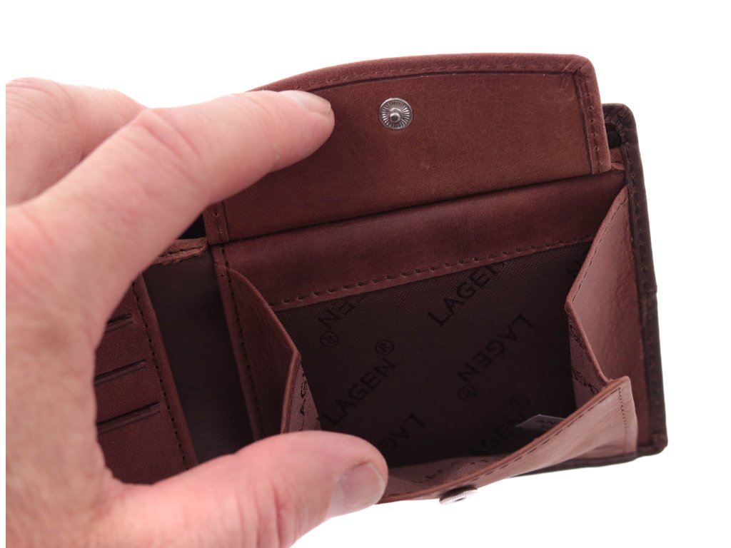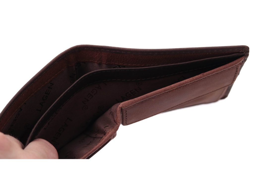 Kvalitná pánska kožená peňaženka v hnedej farbe od značky Lagen. Jednoduchá a praktická - to charakterizuje túto koženú peňaženku otvárajúcu sa na šírku as najnutnejším počtom priehradiek.