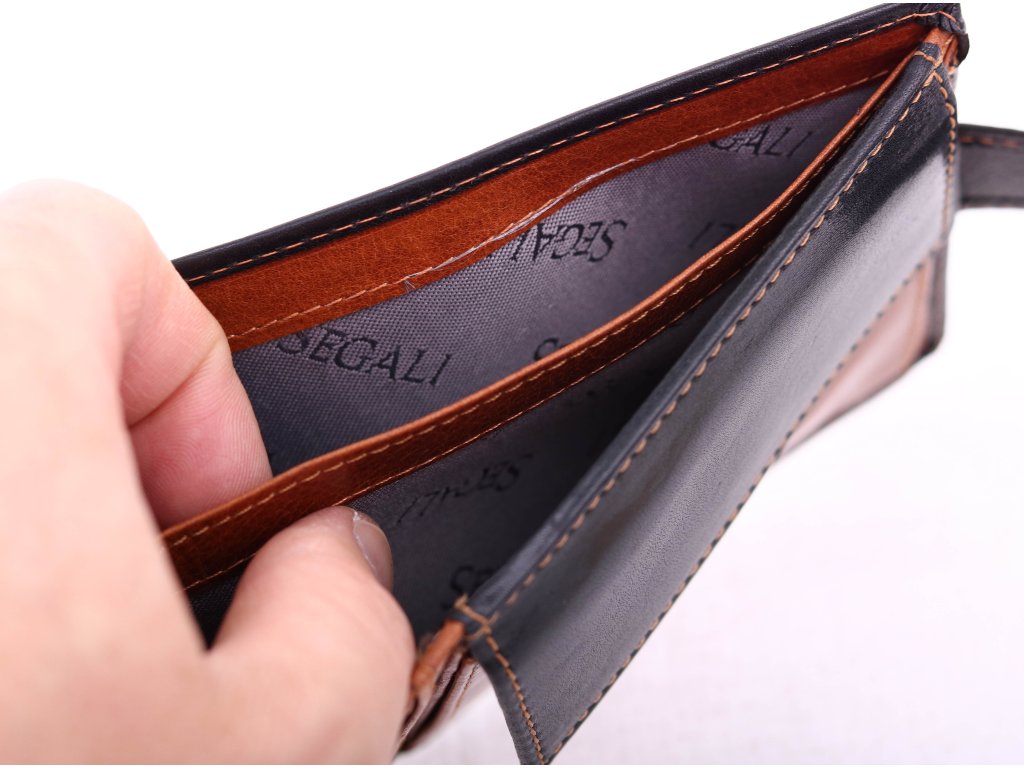 Vybavená a praktická pánska kožená peňaženka z kvalitnej hovädziny pohodlne pojme veľké množstvo dokladov a kariet. Peňaženky od značky Segali prekvapia výborným pomerom kvality a ceny.