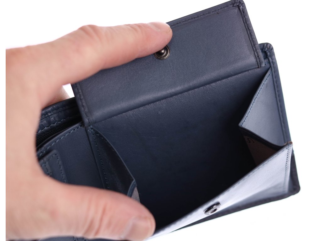 Farba: svetlomodrá s čiernym pásom na spodnej časti peňaženky + modré vnútro peňaženky
