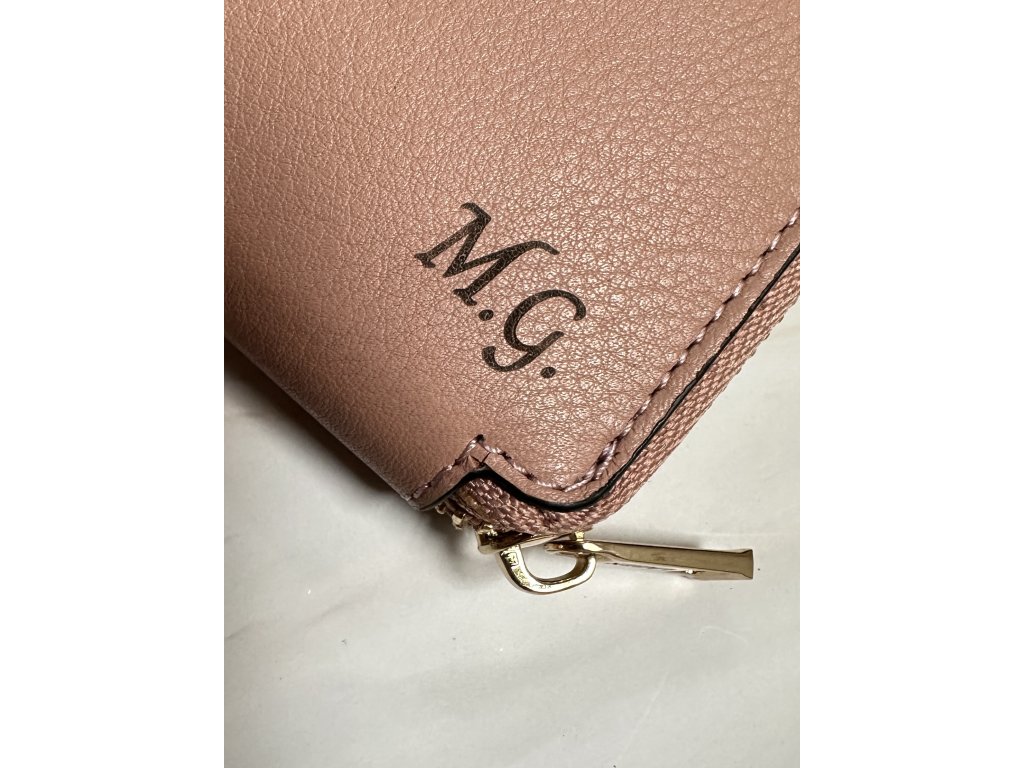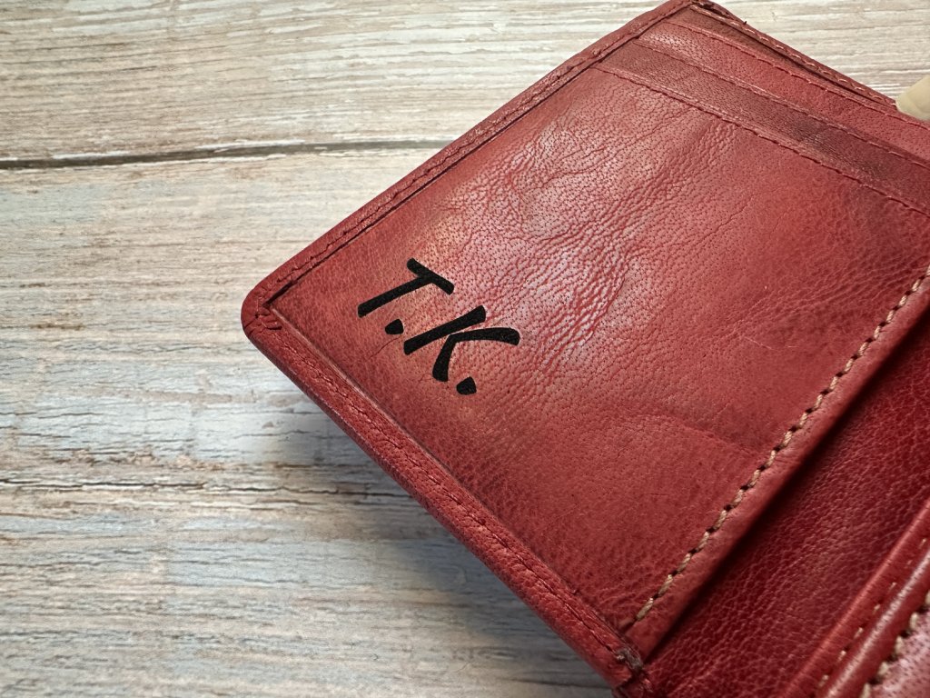 Gravírovanie monogramu na peňaženku