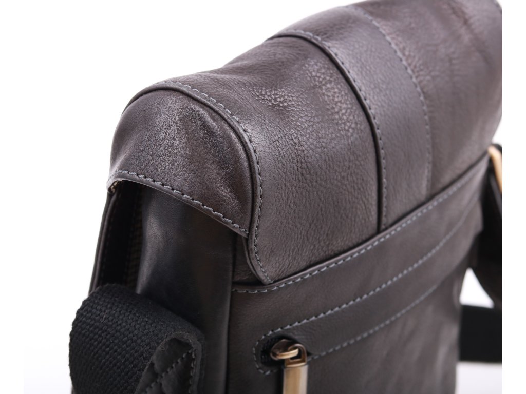 Pánska crossbody taška z hladkej hovädziny v čiernej farbe zdobená sivým prešívaním. Taška sa nosí krížom cez telo alebo len cez rameno.