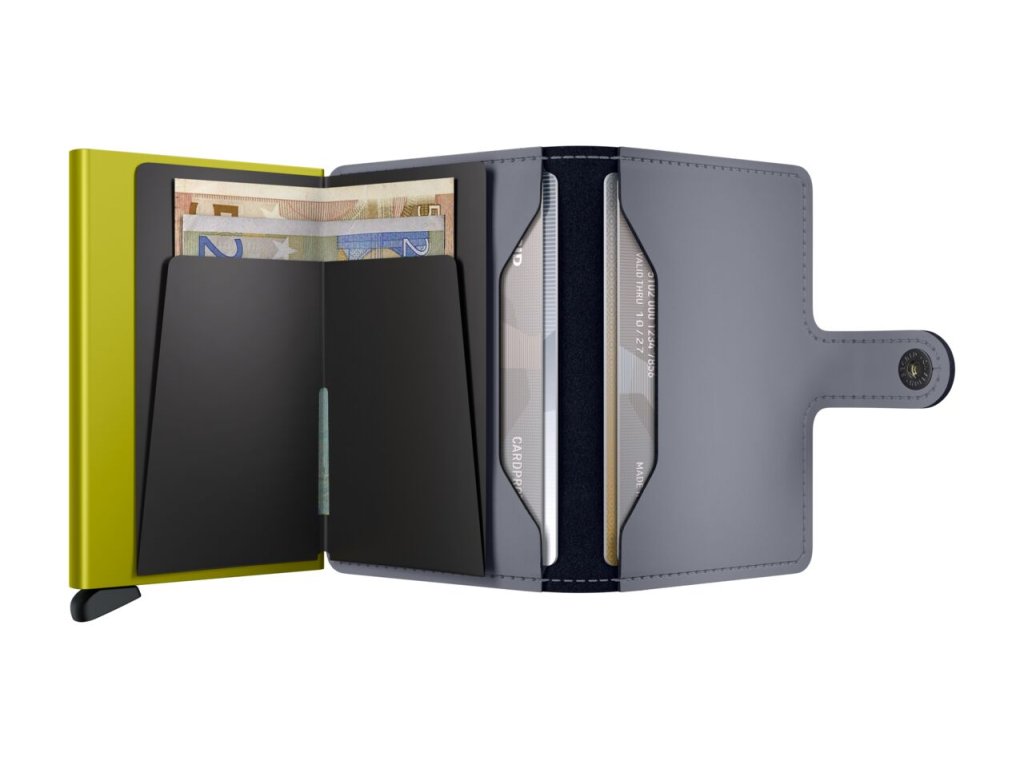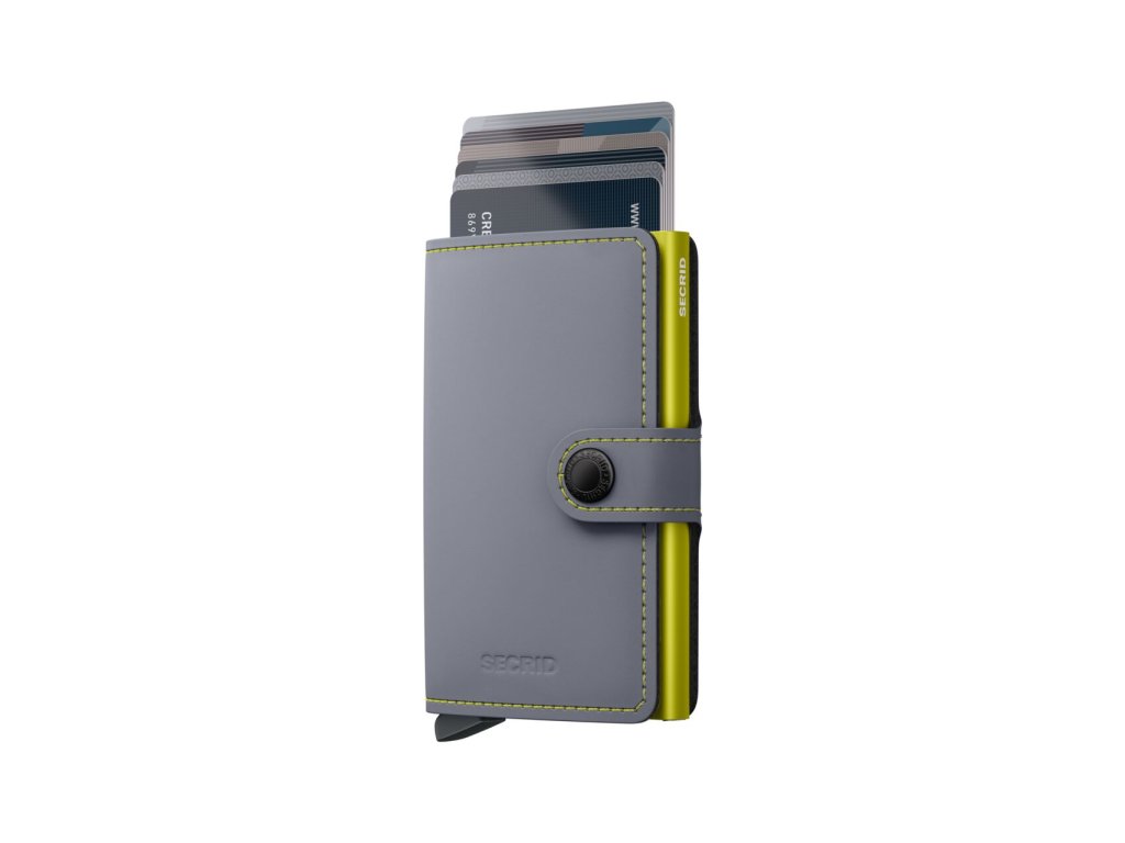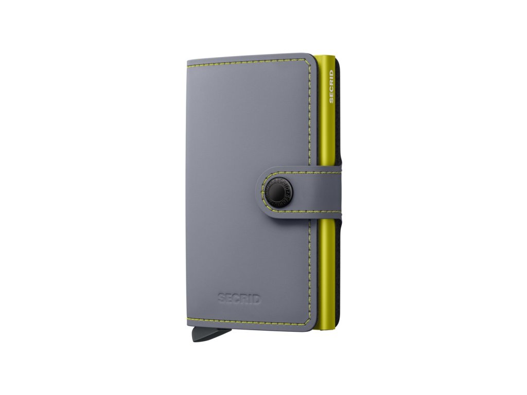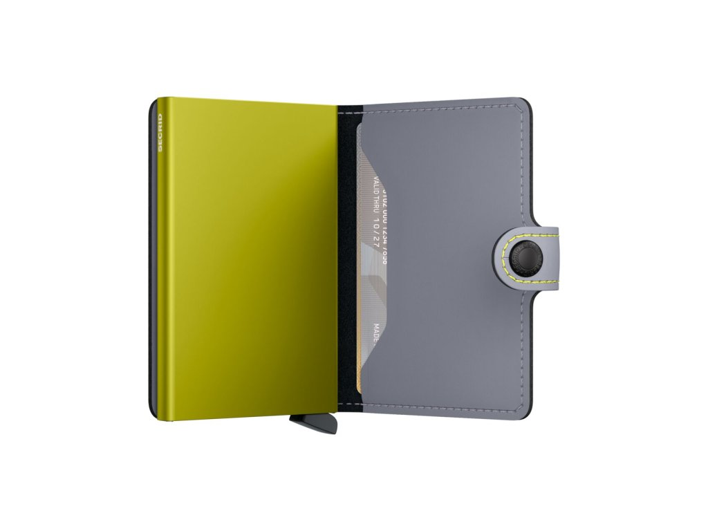 Kožené puzdro na karty SECRID Miniwallet Matte Grey & Lime šedé so žltým prešívaním